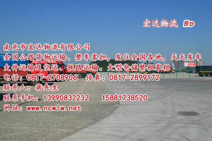 國(guó)內(nèi)公路貨物運(yùn)輸、整車、零擔(dān)、大件運(yùn)輸及空運(yùn)、鐵路運(yùn)輸。 專線:南充-廣州、深圳、浙江、上海、國(guó)內(nèi)每天發(fā)車往返。3-4天到達(dá)目的地。手機(jī):13990832232 15881738520